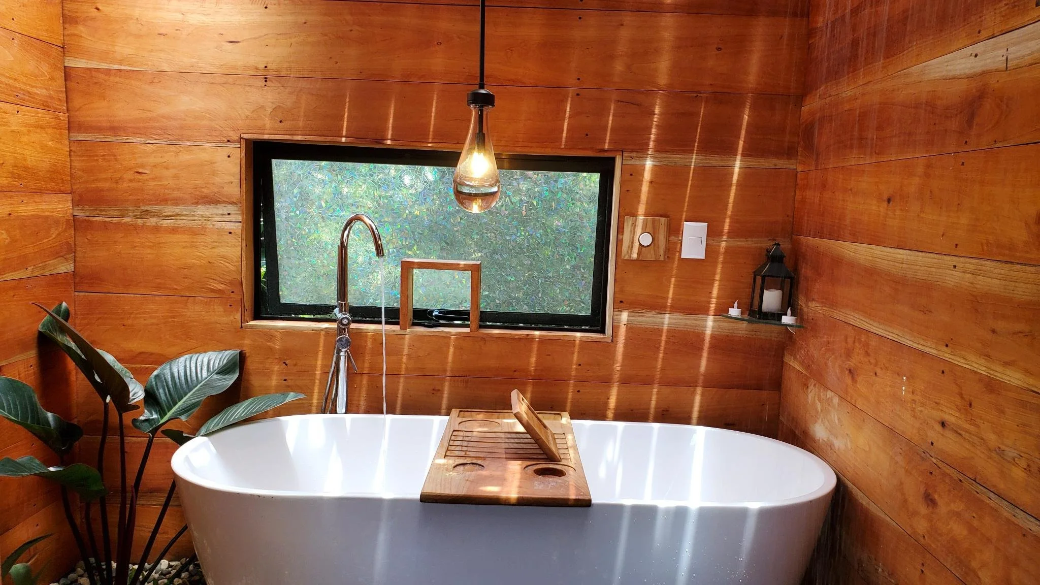 “Tiff + Colin tend to a bountiful farm, beautiful community and peaceful energy. Falling asleep to the jungle soundscape deep in nature and waking up every morning in the little A-frame was a total dream. The clean, flowing river on the property to hike down to and dive in was total bliss. The walks through the rural neighborhood were sweet with beautiful views. And the whole vibe was deeply healing, restful and restorative.